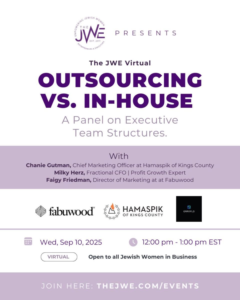 Join us for a dynamic panel with industry experts Faigy Friedman, Milky Herz, and Chani Gutman as they unpack one of the most critical growth decisions entrepreneurs face: when to outsource and when to build in-house.